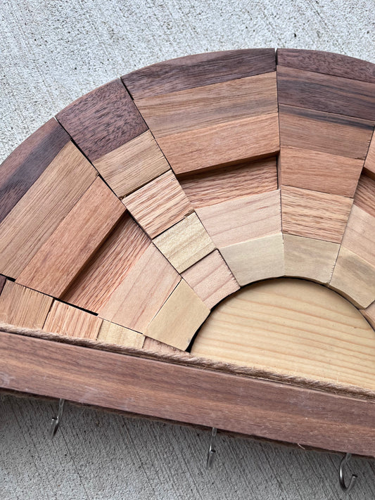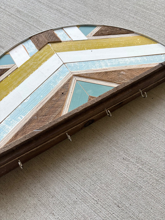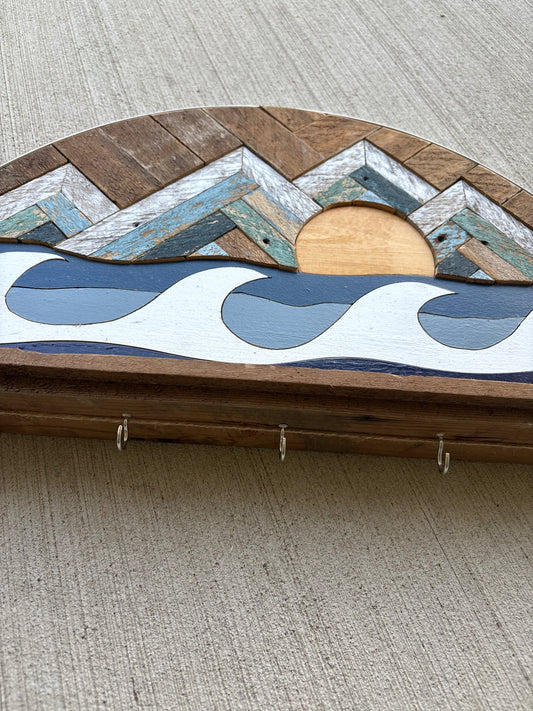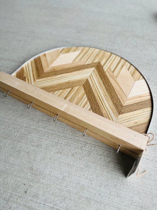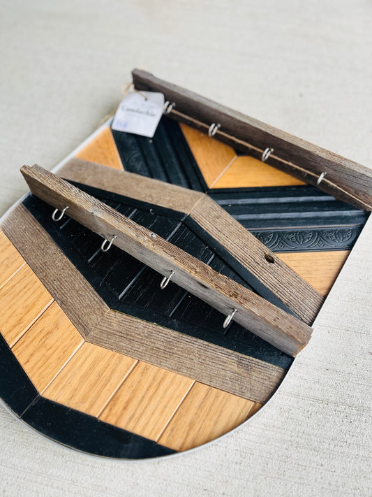 Wall-mounted key hangers are handcrafted from recycled wood, featuring a rustic yet modern design that highlights the natural grain and character of the reclaimed material. These eco-friendly pieces are both practical and stylish, offering sturdy hooks to keep your keys / jewelry and other items organized and easily accessible. Perfect for entryways or living spaces, it combines sustainability with functional decor, making it a thoughtful addition to any home.
