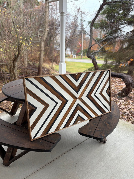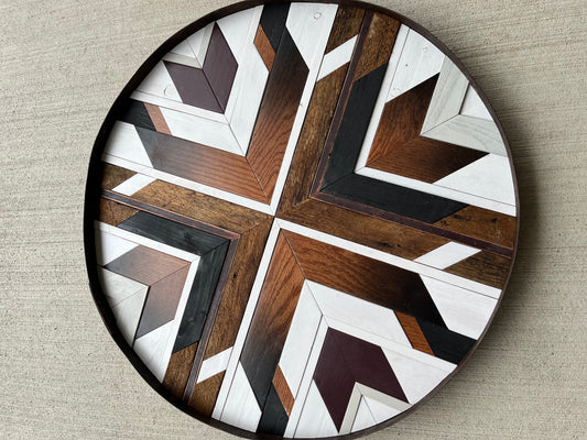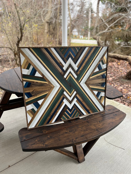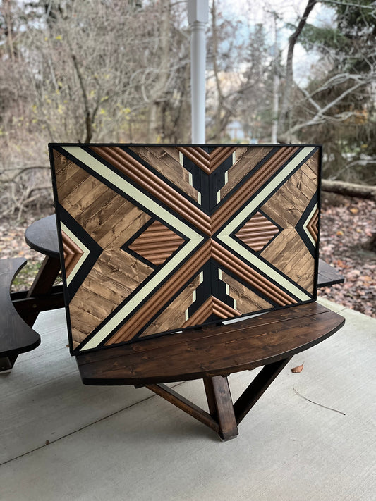 Handcrafted from sustainably sourced/ recycled wood, this unique wall art brings natural beauty and artistry to your space. Featuring a one of a kind design with intricate patterns, textures, or geometric shapes, each piece highlights the wood’s natural grain and imperfections, adding depth and character. Carefully hand-sanded and finished for durability, this one-of-a-kind creation is perfect for adding style to your home or office décor.